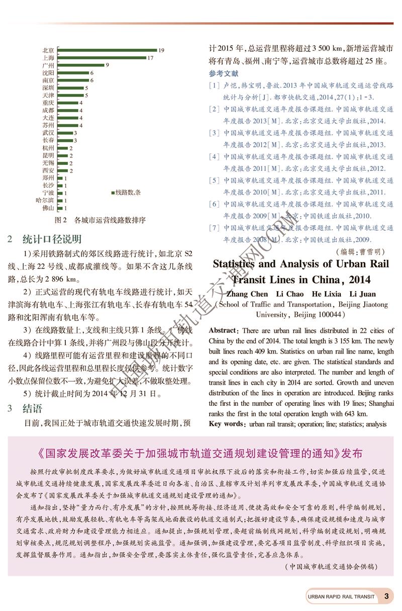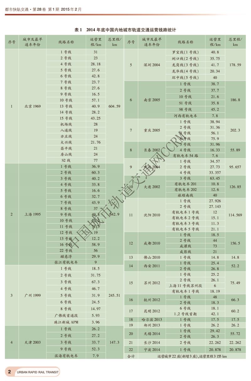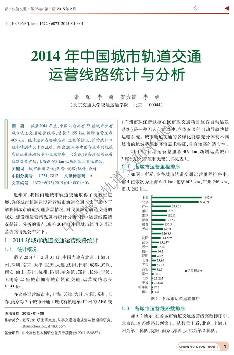 2014年中国城市轨道交通运营线路统计与分析