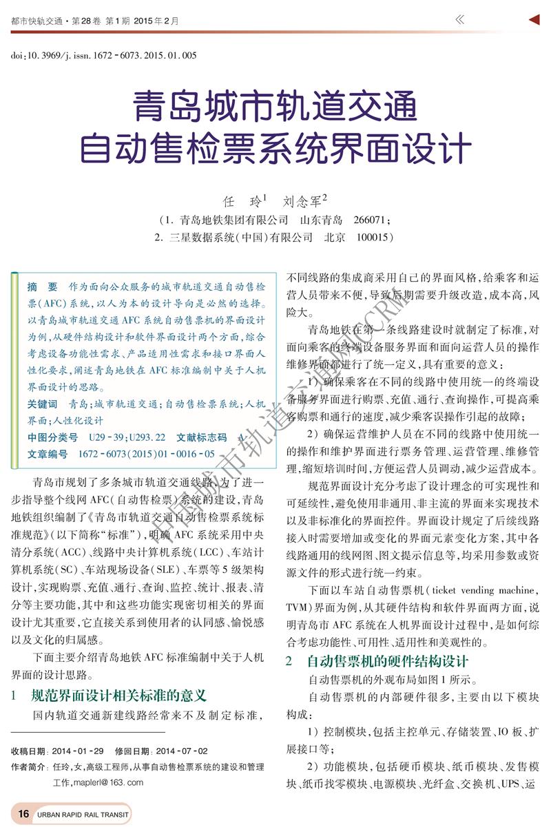 青岛城市轨道交通自动售检票系统界面设计