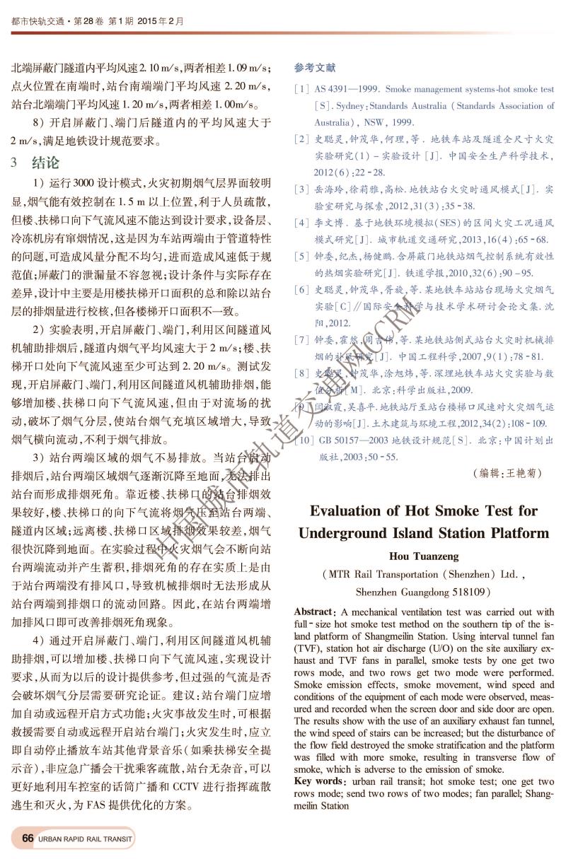 地下岛式车站站台热烟测试评价研究