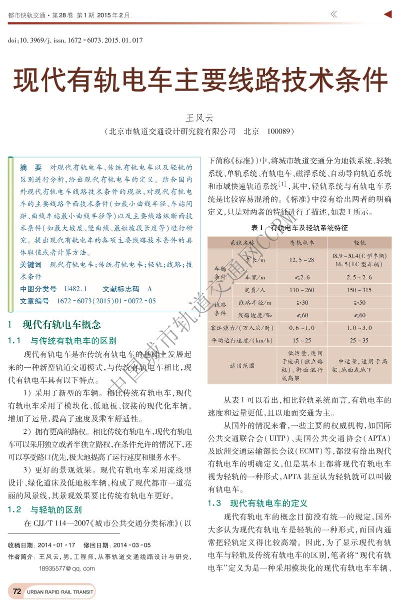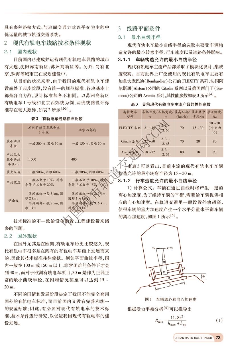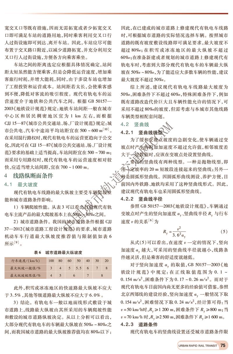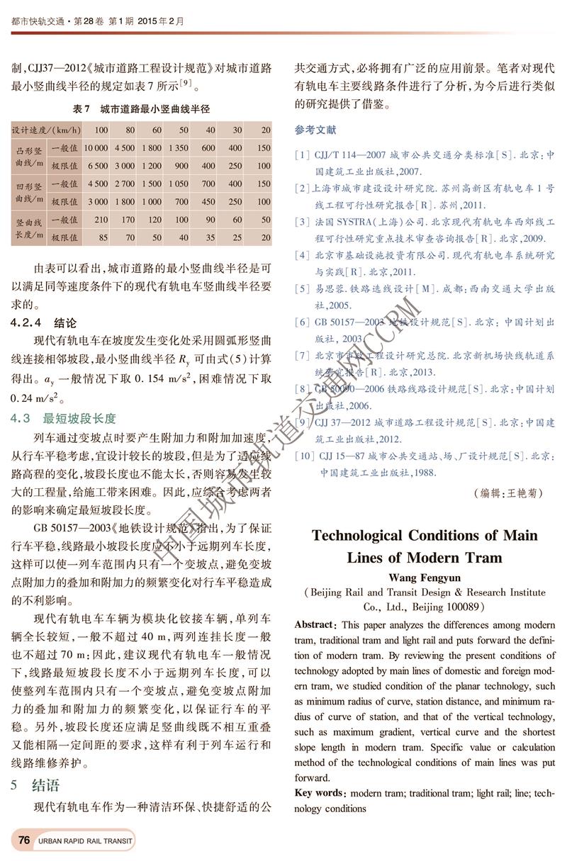 现代有轨电车主要线路技术条件
