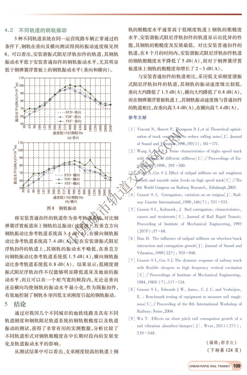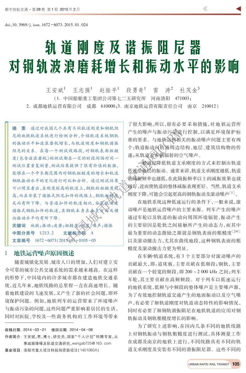 轨道刚度及谐振阻尼器对钢轨波浪磨耗增长和振动水平的影响