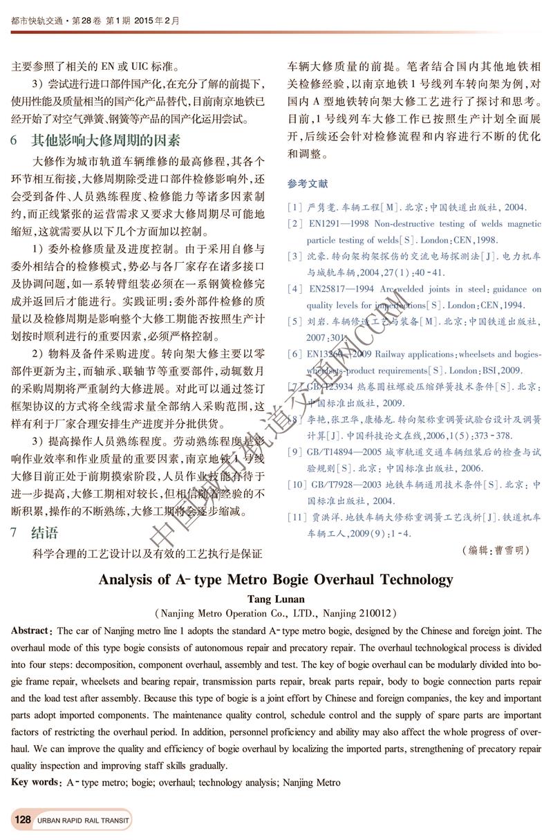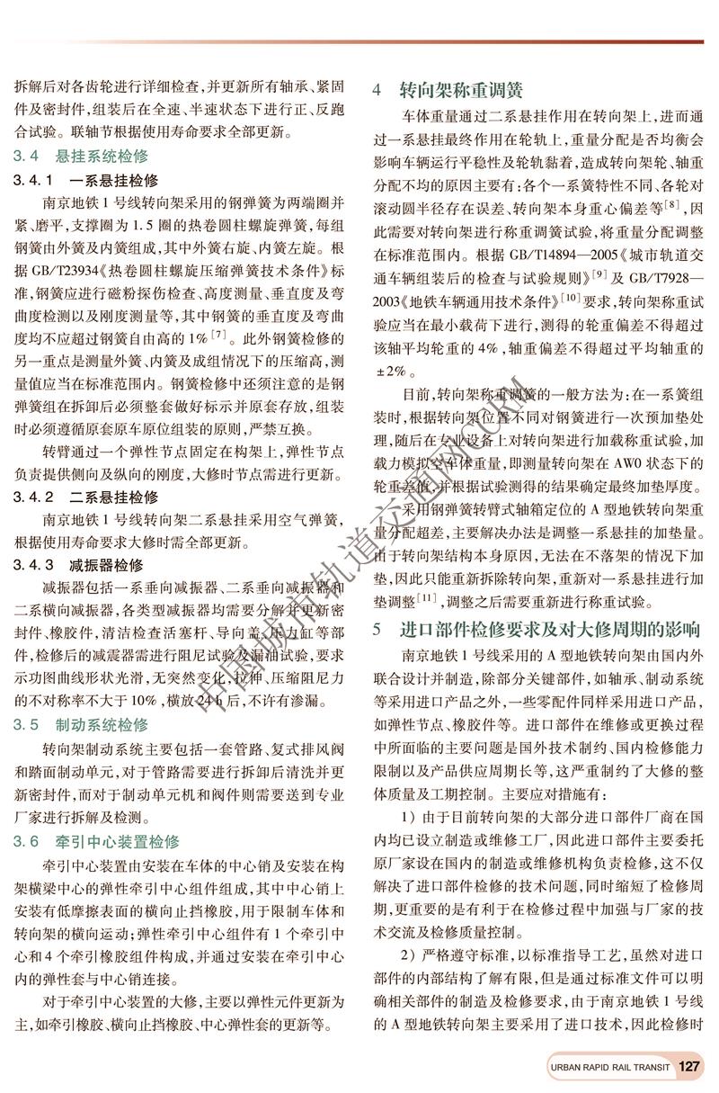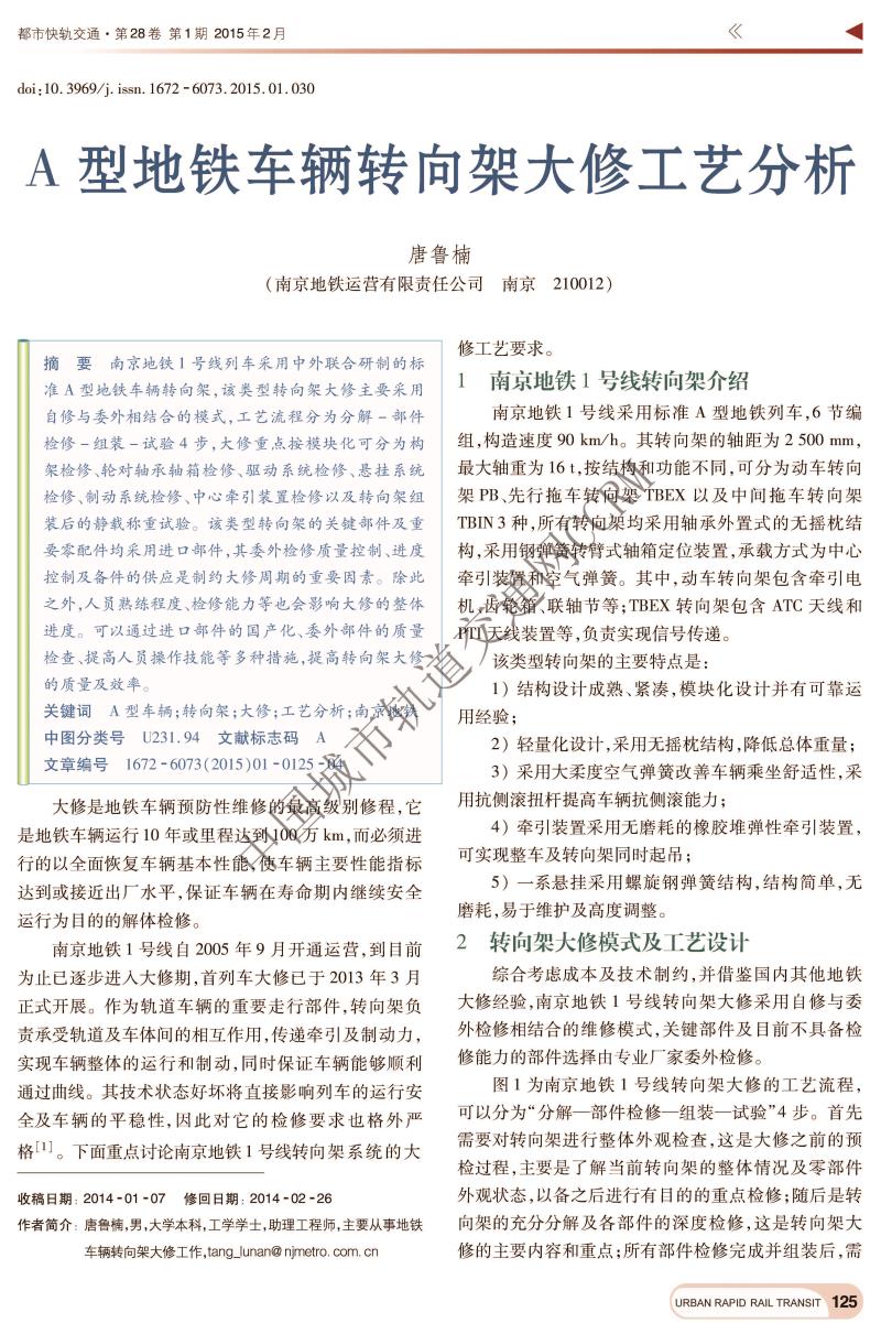 A型地铁车辆转向架大修工艺分析