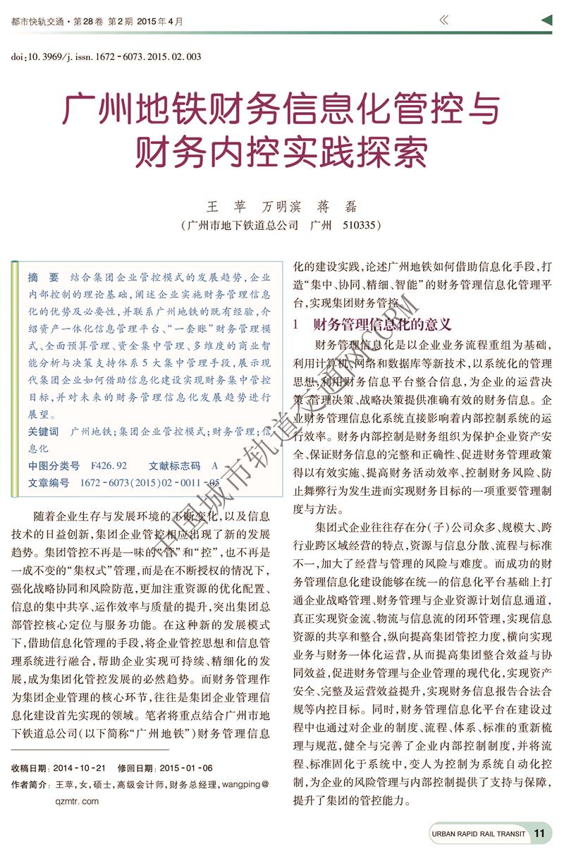 广州地铁财务信息化管控与财务内控实践探索