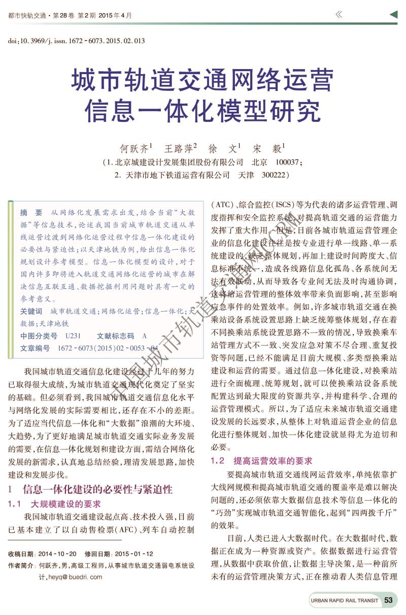 城市轨道交通网络运营信息一体化模型研究