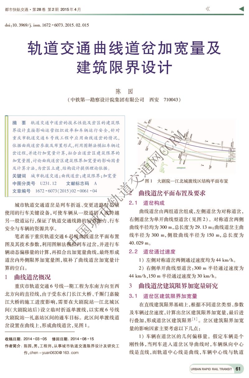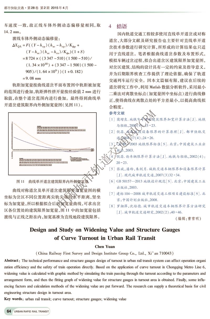 轨道交通曲线道岔加宽量及建筑限界设计