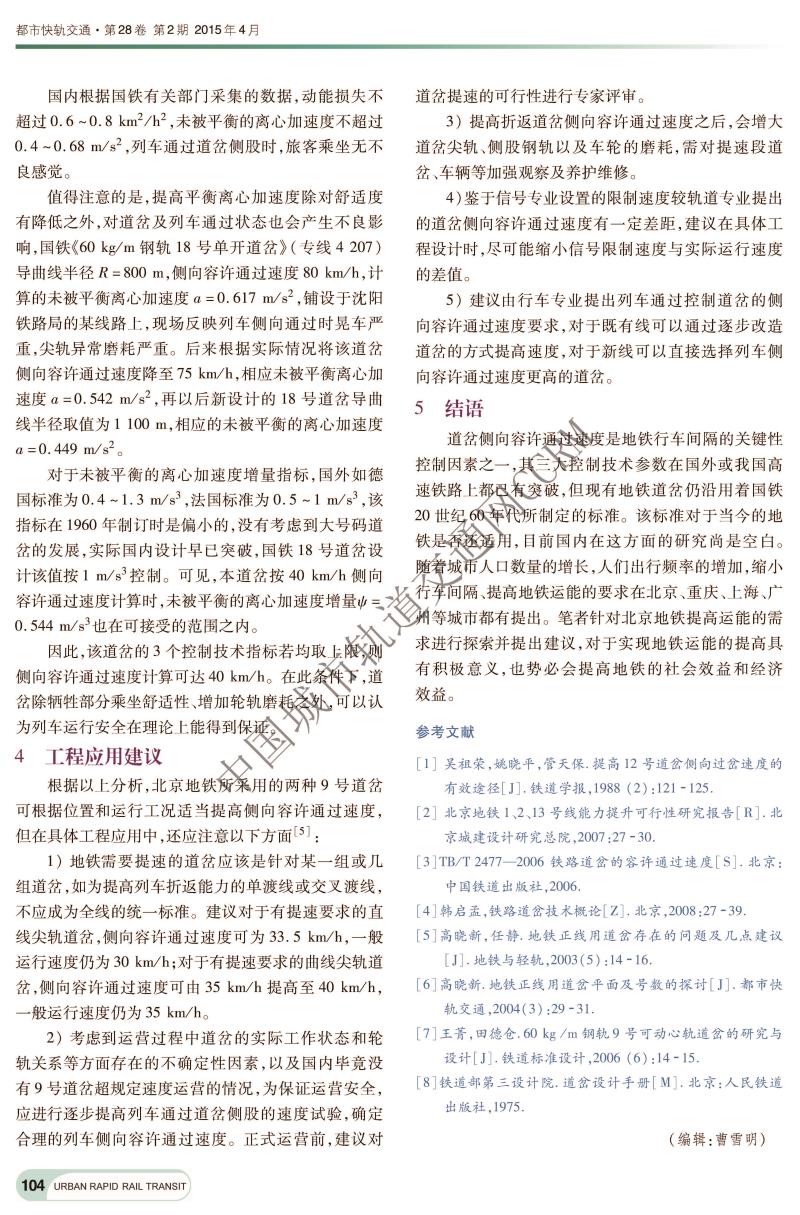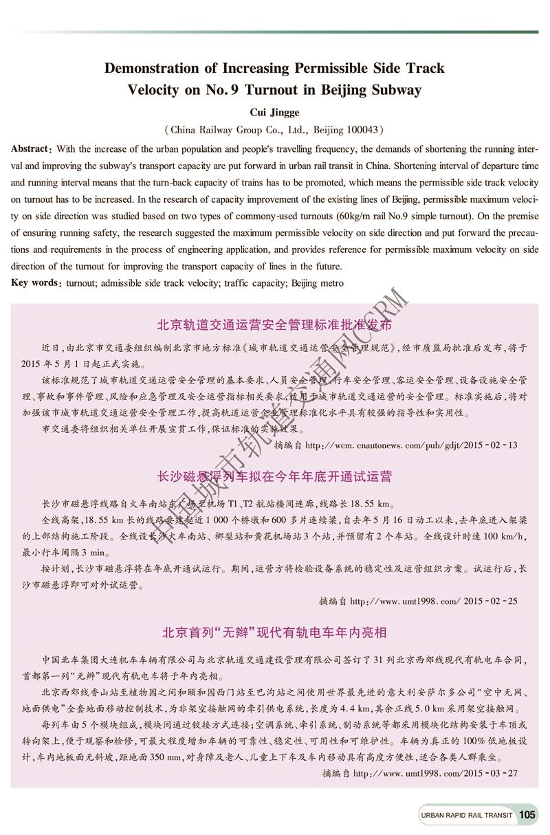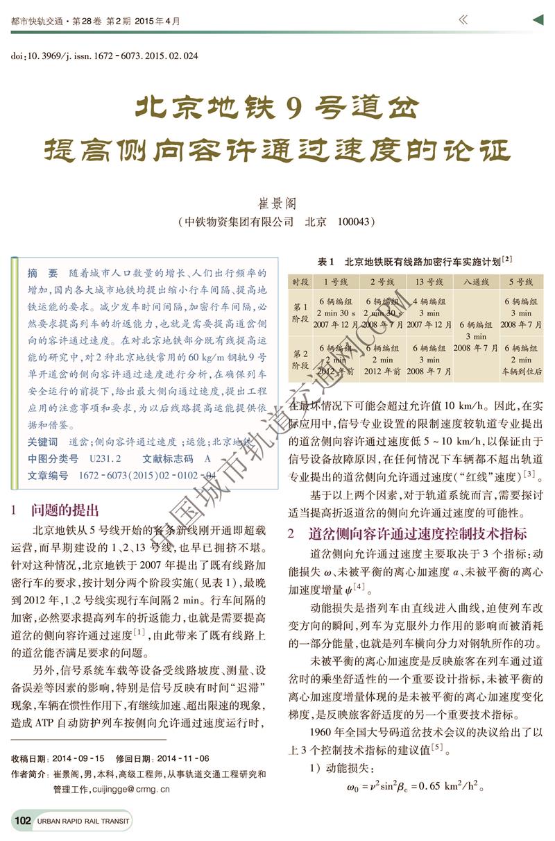 北京地铁9号线道岔提高侧向容许通过速度的论证