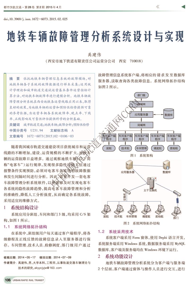 地铁车辆故障管理分析系统设计与实现