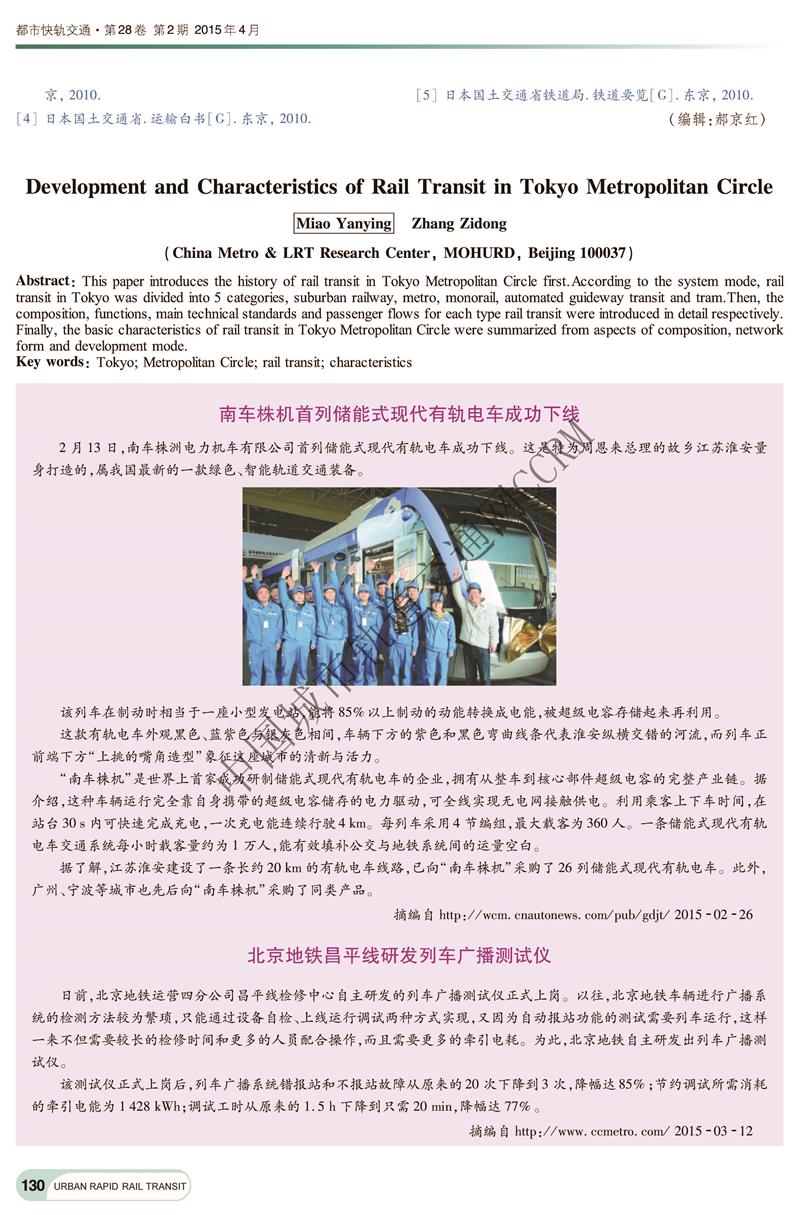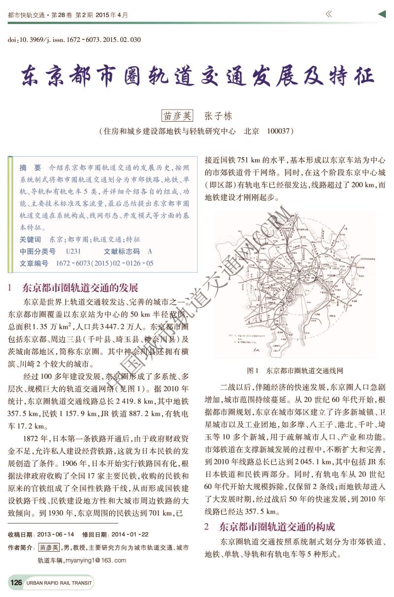 东京都市圈轨道交通发展及特征