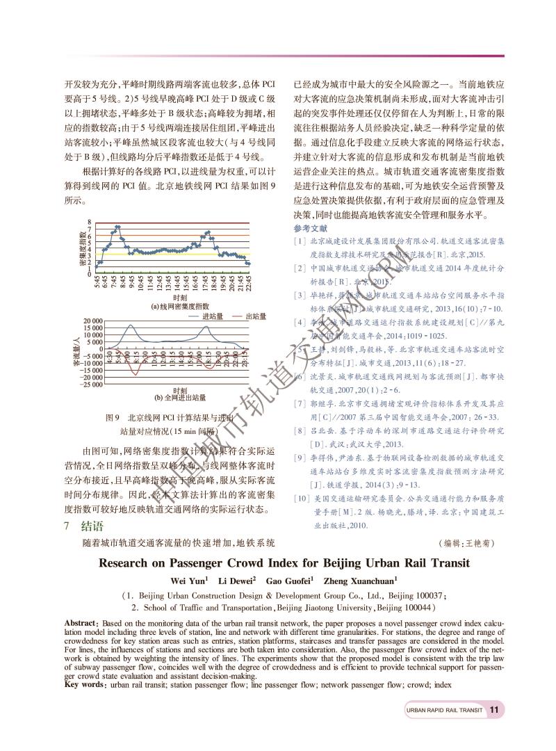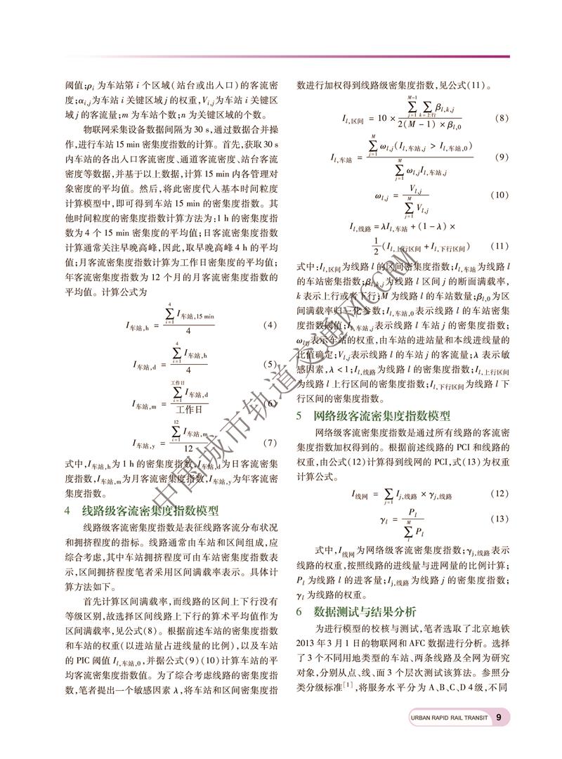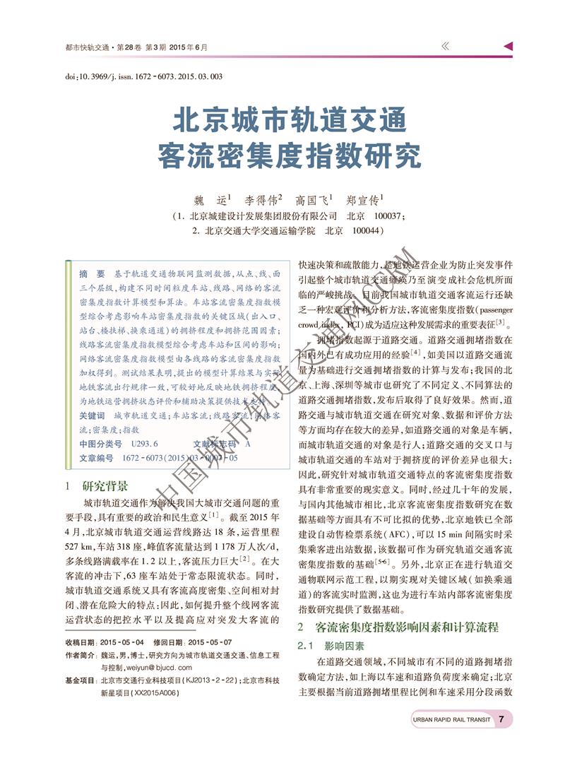 北京城市轨道交通客流密集度指数研究