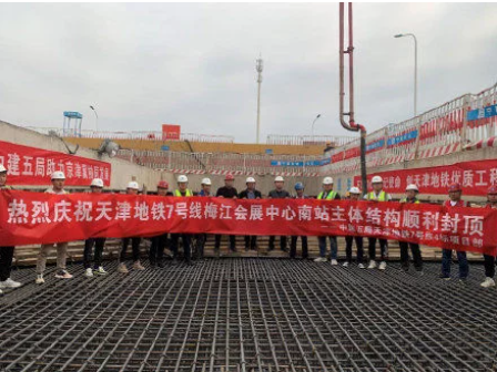 梅江南站主体结构封顶标志着天津地铁7号线项目建设取得了阶段性成果,为车站附属结构施工奠定了良好的基础。