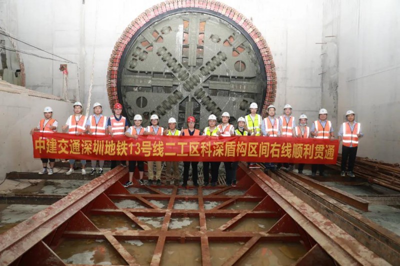 4月22日,随着科苑站盾构接收端头洞门地连墙的破除,科深区间(科苑站-深大东站)右线顺利贯通。至此,深圳地铁13号线第9条单线隧道贯通。