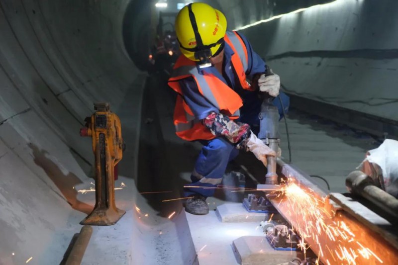 近日,新能源焊轨机在南昌地铁4号线一期02标项目正式投入使用,七里站至民园路站区间左线第一对钢轨头的焊接完成,标志着南昌地铁4号线02标进入焊轨施工阶段。
