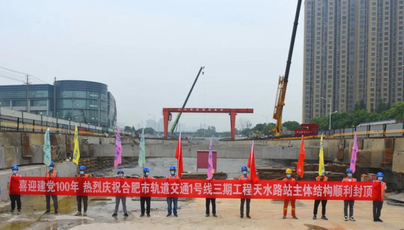 5月19日上午,合肥轨道交通1号线三期工程天水路站主体结构最后一块顶板混凝土成功浇注,这标志着天水路站主体结构顺利封顶。
