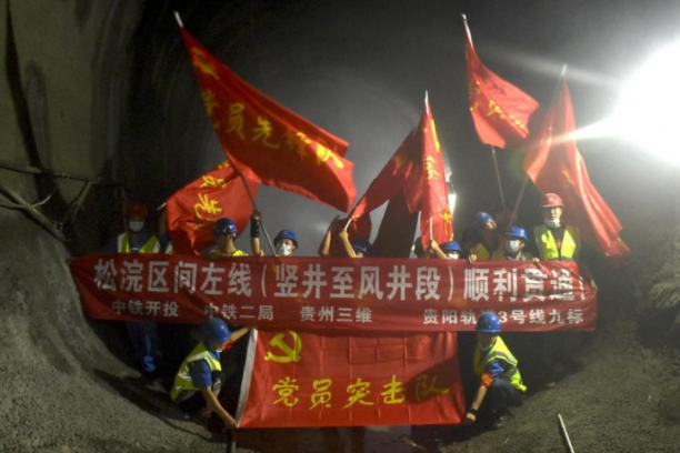 7月3日,贵阳轨道交通3号线一期工程土建9标松花路站~浣纱路站区间隧道竖井至风井段左线顺利贯通。