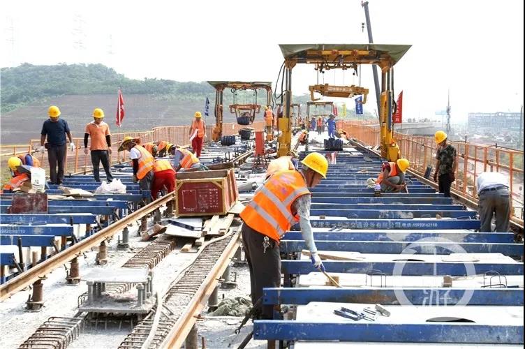 据了解,重庆轨道交通4号线二期轨道铺设现有10个作业面同时施工,最高峰可达18个作业面同时施工,单日最长可完成轨道板铺设2公里,预计到今年10月底,轨道交通4号线二期全线将实现长轨通,下一步将陆续实现电通、联调联试等。