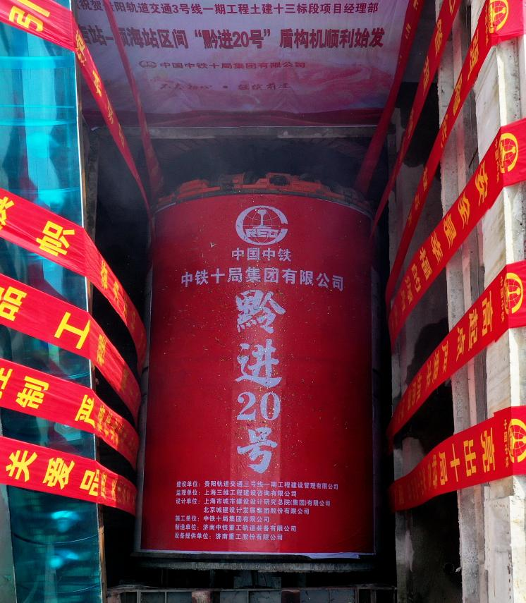 7月24日,随着“黔进20号”盾构机刀盘缓缓向前,贵阳轨道交通3号线土建13标茶店站~顺海站区间右线盾构机顺利始发。