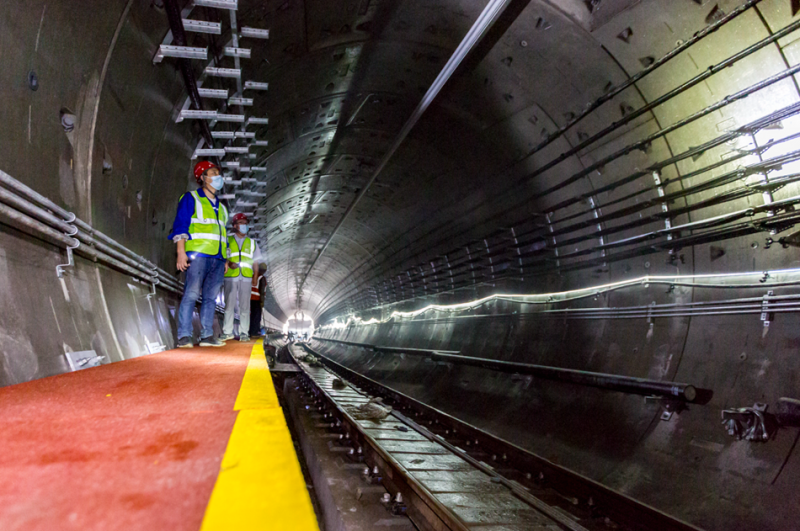 中铁二十二局集团担负南段正线近37公里的铺轨任务,工期紧、任务重。自2020年10月28日开始铺轨以来,项目部克服了冬季施工、疫情冲击等不利因素,日夜奋战、科学组织,不断加快进度。
