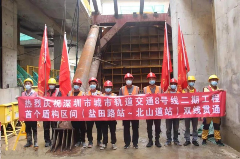 8月11日,地铁8号线二期盐北区间(即“盐田路站~北山道站”)右线盾构机刀盘破土而出,顺利抵达接收井。至此,盐北区间双线顺利贯通。这也是8号线二期全线首个双线贯通的区间。