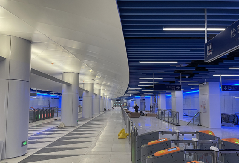 记者了解到,鱼嘴站及头关街配套工程由中铁五局承建。鱼嘴站为地下两层,车站总长 448.85m(车站主体长 265.1m,停车线长 183.75m),共有四个出入口。目前,车站的主体结构全部完成,且通过子单位验收,等待接受全线验收。