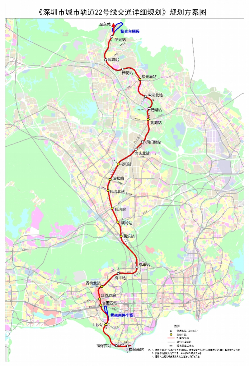 10月11日,深圳市规划和自然资源局发布地铁22号线详细规划。根据规划方案,22号线设计最高运行速度为100公里/小时,采用A型车8辆编组,主要承担福田主中心对龙华和东莞等地区的辐射带动作用、促进多中心组团式空间结构的形成和缓解中部走廊交通压力的功能,实现福田主中心与观澜组团中心45分钟、临深片区60分钟通达的规划目标。