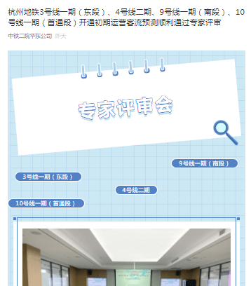 10月14日,中铁二院华东公司官方公众号发布《杭州地铁3号线一期(东段)、4号线二期、9号线一期(南段)、10号线一期(首通段)开通初期运营客流预测顺利通过专家评审》的消息,也透露了这4条地铁最新的开通时间安排。