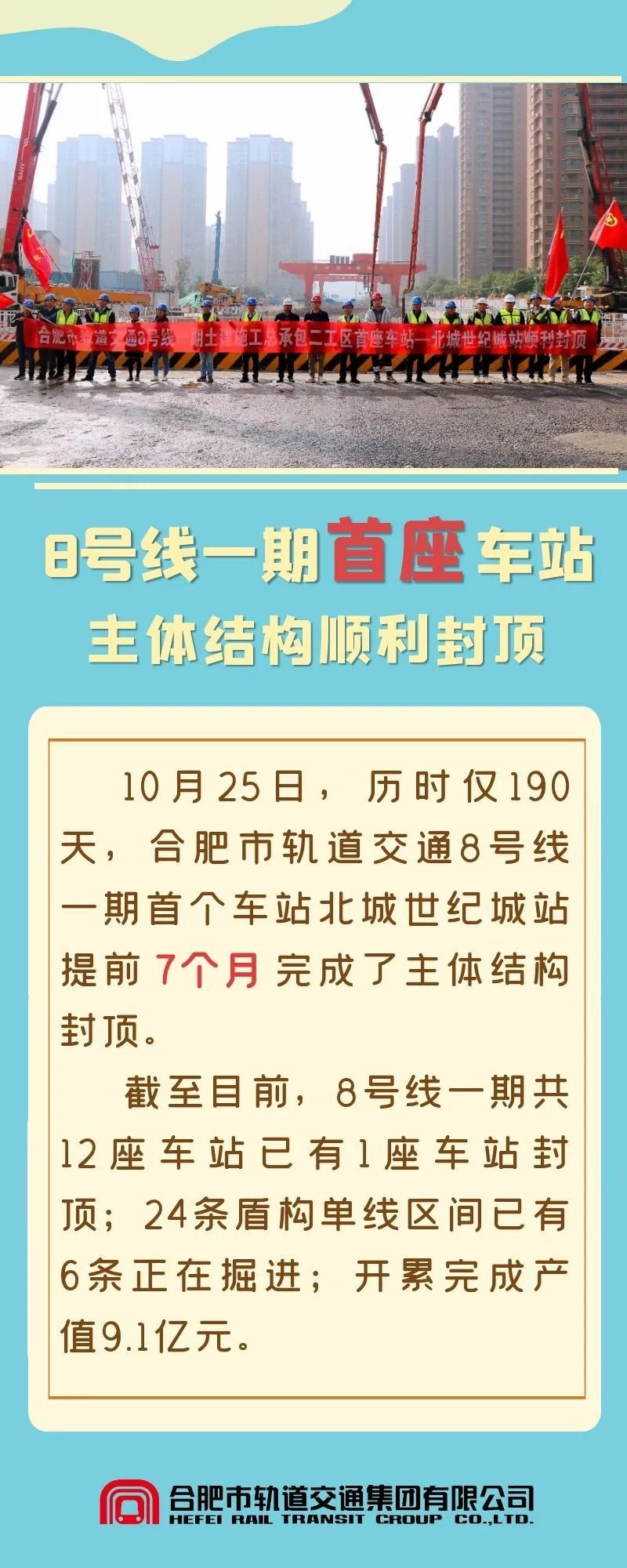 截至目前,8号线一期共12座车站已有1座车站封顶; 24条盾构单线区间已有6条正在掘进;开累完成产值9.1亿元。