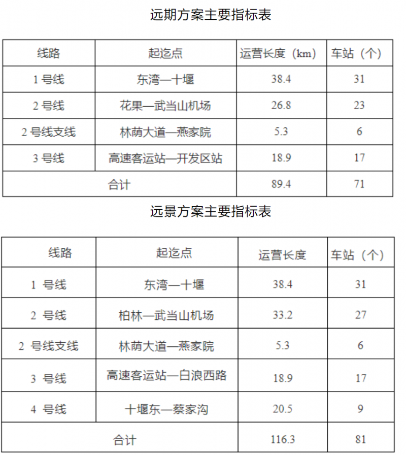 4号线:枢纽连接线,线路起于十堰东高铁站,终于蔡家沟,线路长20.5km,设站9座,平均站间距2.56km。