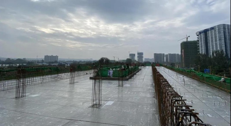 10月25日,随着最后一块顶板浇筑完成,27号线一期工程高架段三圣寺站实现主体结构完工,成为高架段首座封顶的车站,标志着27号线一期工程高架段正式进入全面建设阶段。
