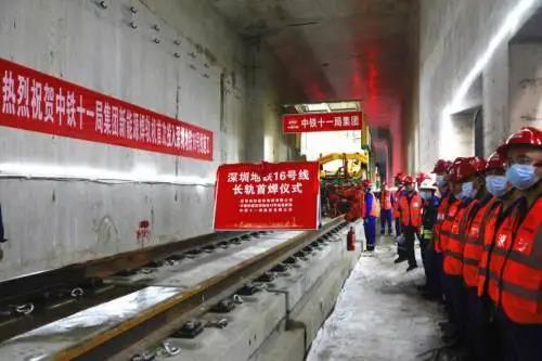 10月27日下午,在深圳地铁16号线田心铺轨基地施工现场,两条25米钢轨连接处火花四溅,经过焊轨机数秒的连续作业,两条钢轨顺利完成无缝衔接,标志着深圳地铁16号线项目焊轨施工正式开始。