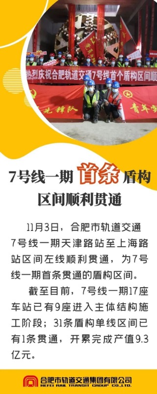 截至目前,7号线一期17座车站已有9座进入主体结构施工阶段;31条盾构单线区间已有1条贯通,开累完成产值9.3亿元。