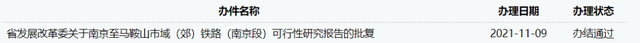 11月9日,江苏省发改委正式批复《南京至马鞍山市域(郊)铁路(南京段)可行性研究报告》,预示着南京至马鞍山市域郊线全线正式获批!