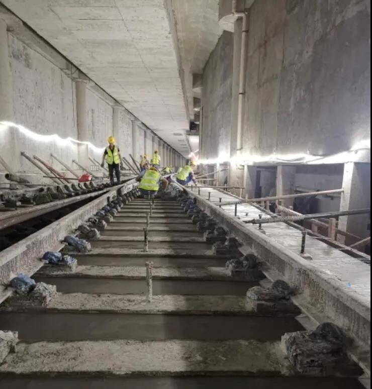 近日,深圳轨道交通12号线轨道一工区项目南油站左右线单开道岔浇筑完成,顺利完成阶段性节点目标。