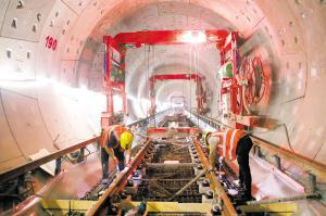 5号线铺轨工作自2019年11月起展开。据介绍,地铁5号线的轨道是由一段段25米长的钢轨结合而成,目前还剩200米就完成全部钢轨铺设,即“短轨通”。而地铁列车如果要上轨起跑,还需对一根根钢轨进行无缝焊接,最后实现“长轨通”,也就是真正意义上的轨通。