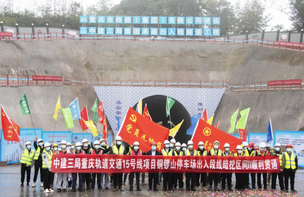 11月18日,由中建三局承建的重庆轨道交通15号线铜锣山停车场出入段线暗挖区间II顺利贯通,这是重庆轨道交通15号线一期工程全线上首条贯通的隧道。