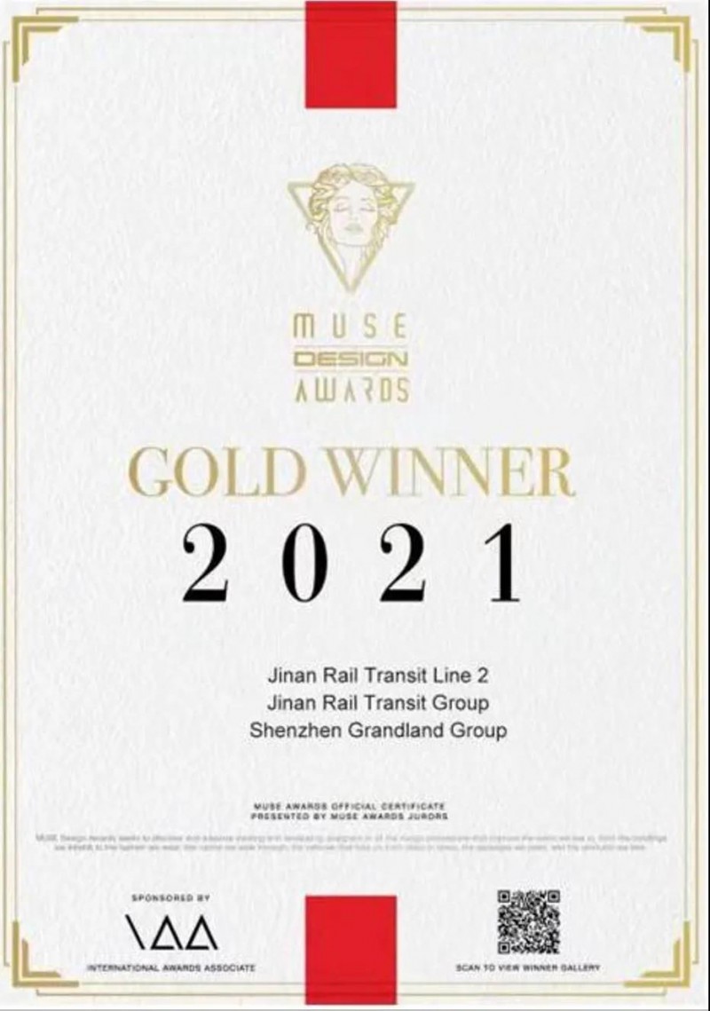 在济南轨道交通3号线车站装修设计获IAI设计金奖后济南地铁车站装修再传喜讯。 近日,美国缪斯设计奖(MUSEDesignAwards)公布了2021年第二季全球获奖榜单,济南轨道交通2号线装修设计作品荣获室内设计类别金奖!