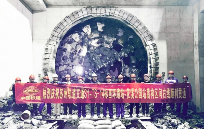 由中铁十八局集团参建的苏州轨道交通S1线地质最复杂区间西环路站至花溪公园站区间双线贯通,标志着苏州轨道交通S1线工程土建施工项目(第一批)S1-TS-14标顺利完成全部盾构作业,为全线洞通打下了坚实基础。
