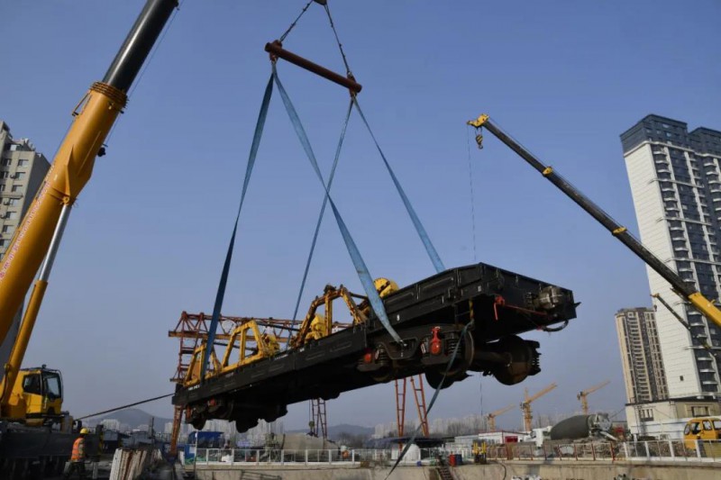 12月10日,在大连地铁5号线梭鱼湾南站施工现场,首台轨道车顺利完成吊装进场作业。这标志着大连地铁5号线各系统安装工程正式进入全面施工阶段。