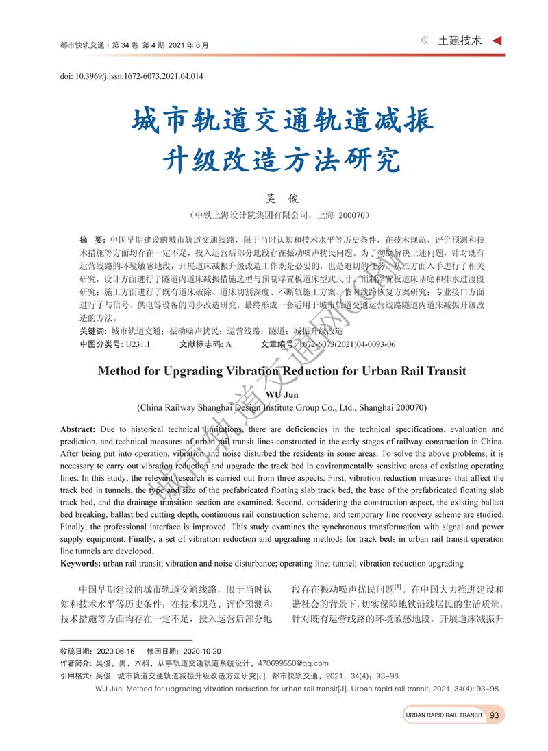 城市轨道交通轨道减振升级改造方法研究