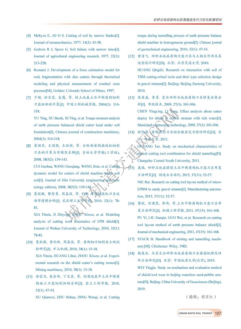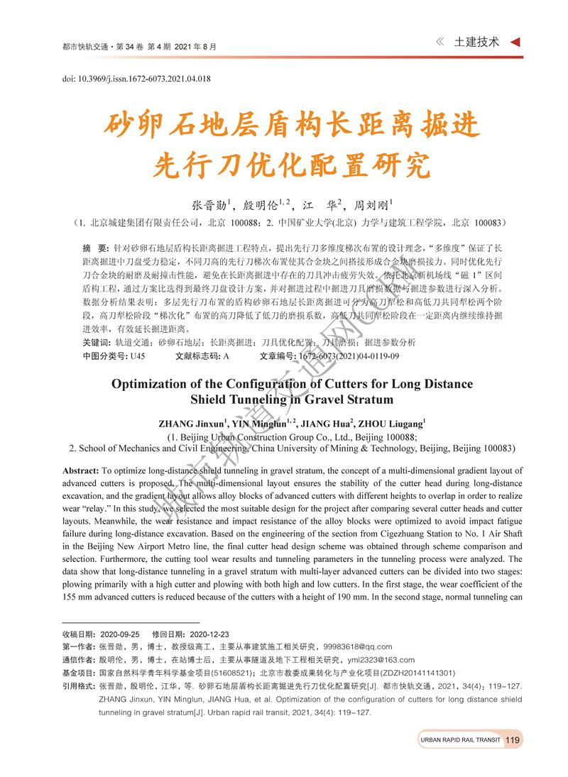 砂卵石底层盾构长距离掘进先行刀优化配置研究