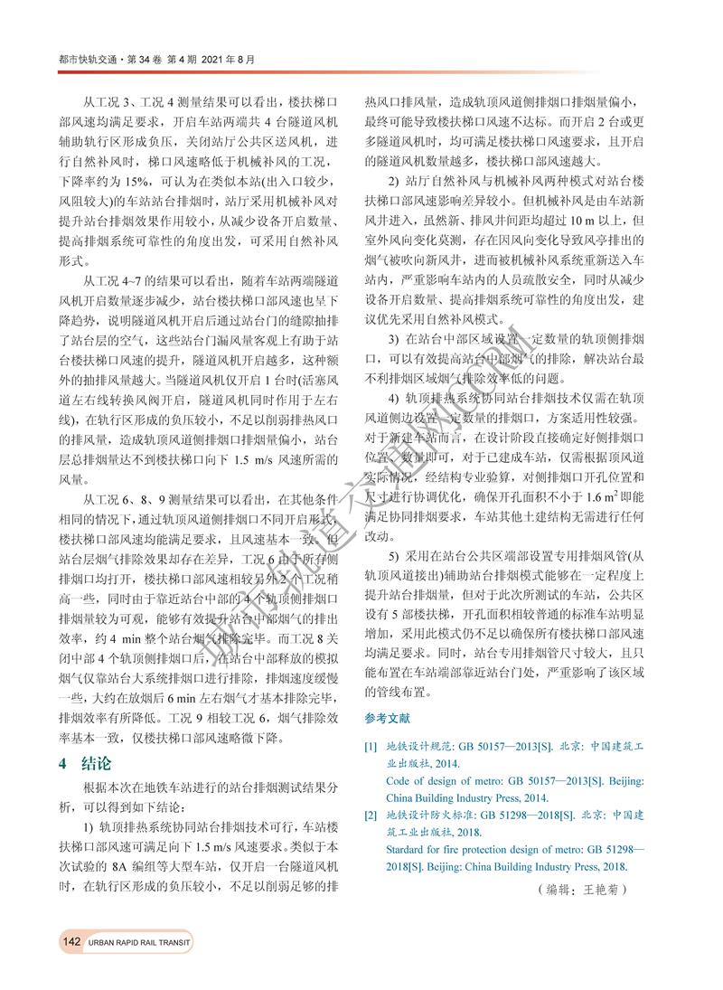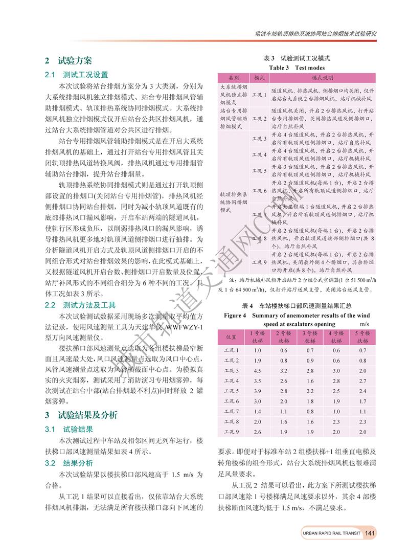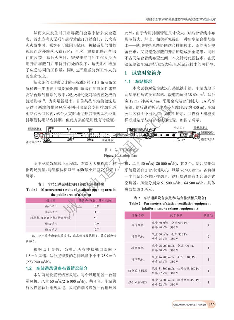 地铁车站轨顶排热系统协同站台排烟技术试验研究