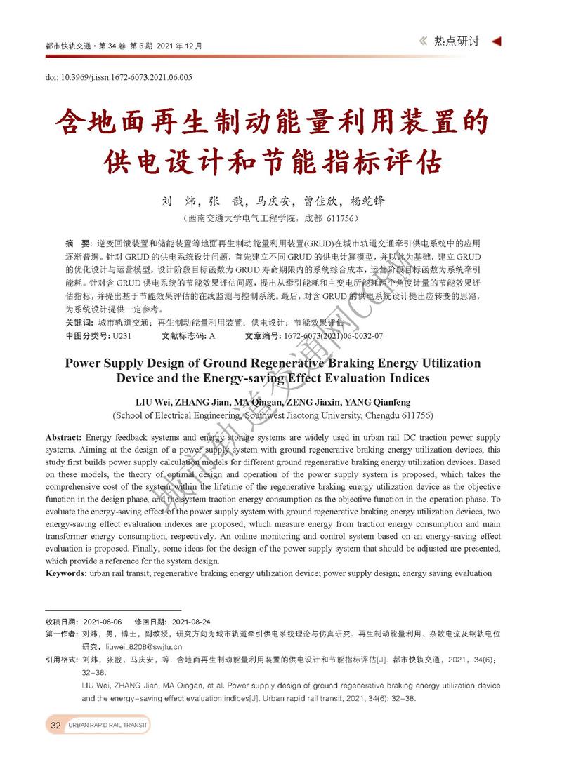 含地面再生制动能量利用装置的供电设计和节能指标评估