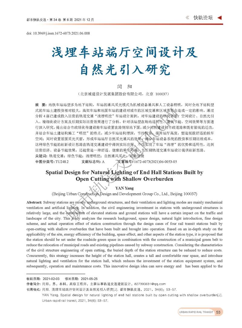 浅埋车站端厅空间设计及自然光引入研究