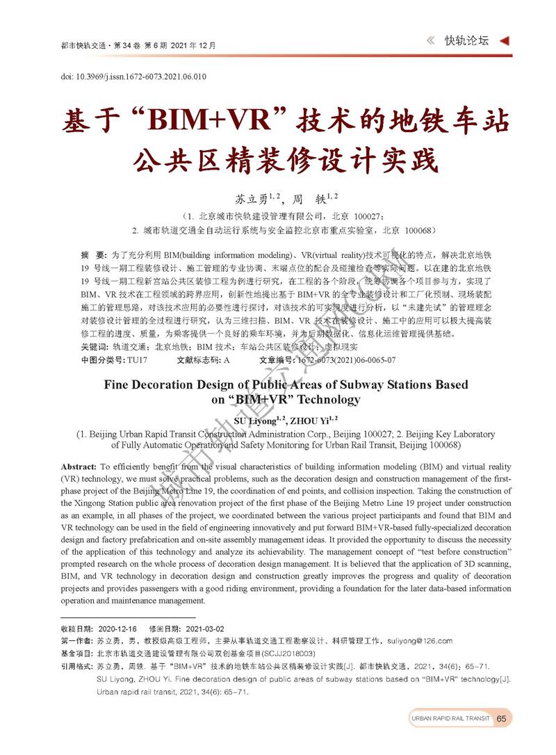 基于”BIM+VR“技术的地铁车站公共区精装修设计实践