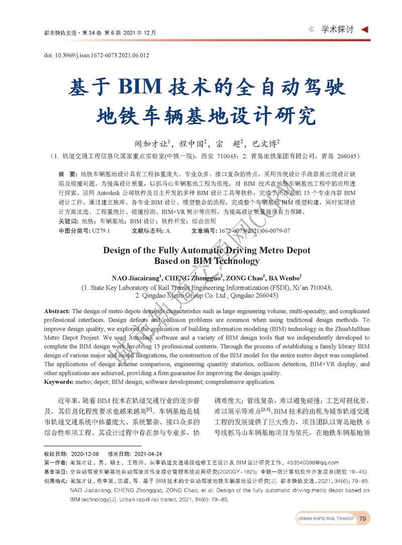 基于BIM技术的全自动驾驶地铁车辆基地设计研究