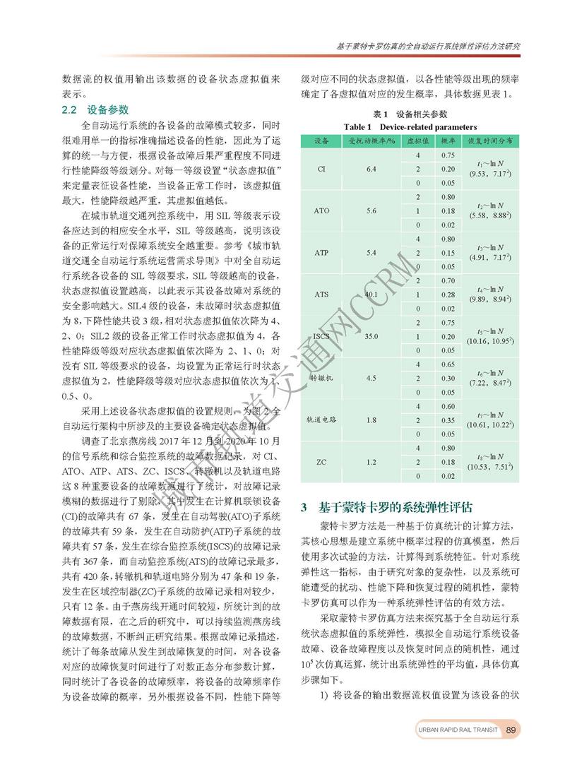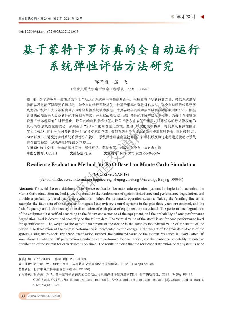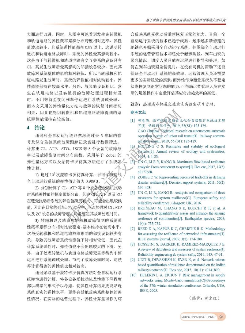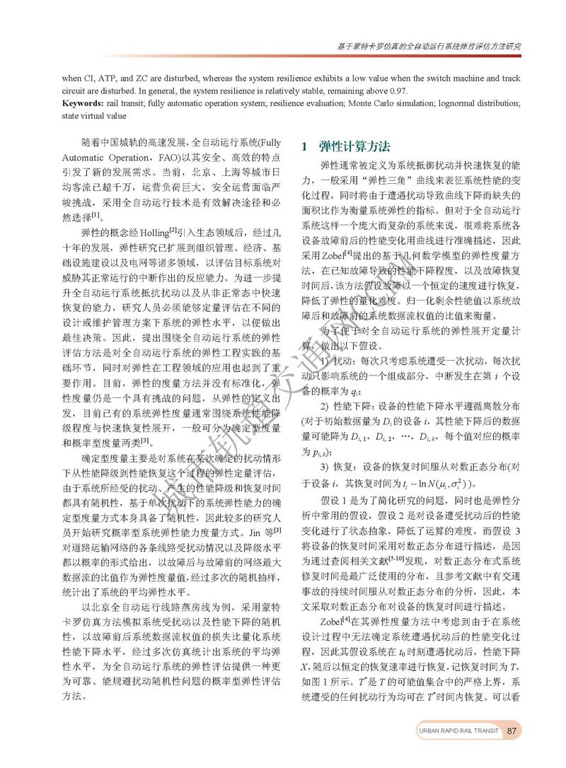 基于蒙特卡洛仿真的全自动运行系统弹性评估方法研究