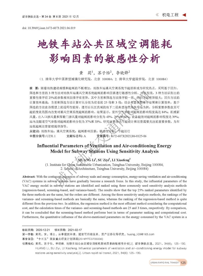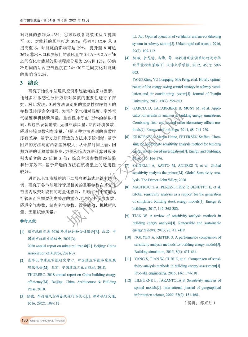 地铁车站公共区域空调能耗影响因素的敏感性分析