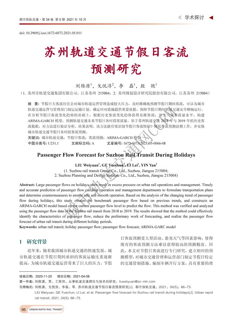 苏州轨道交通节假日客流预测研究