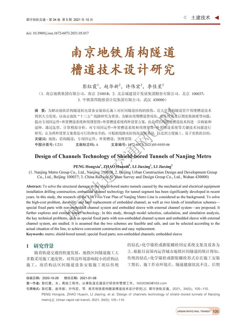 南京地铁盾构隧道槽道技术设计研究