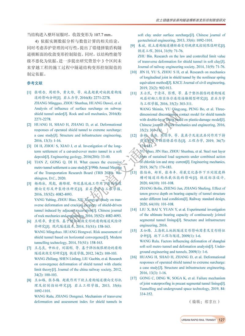 软土错缝拼装盾构隧道横断面变形控制限值研究