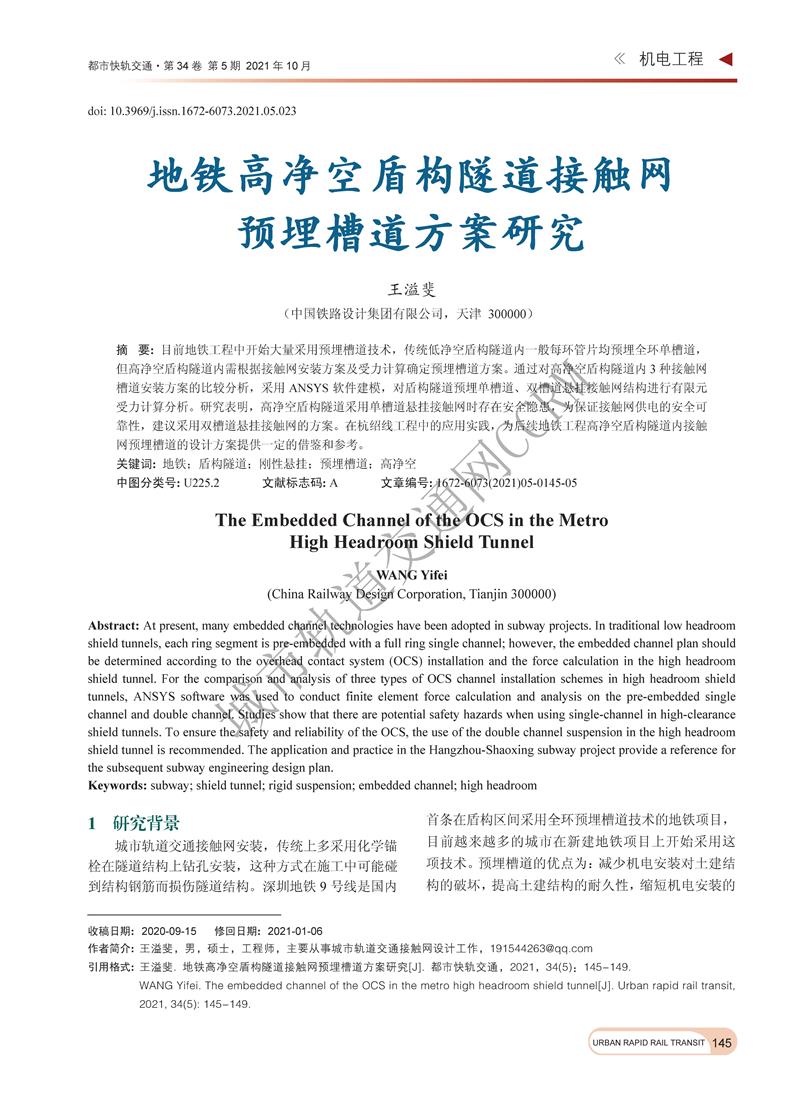 地铁高净空盾构隧道接触网预埋槽道方案研究